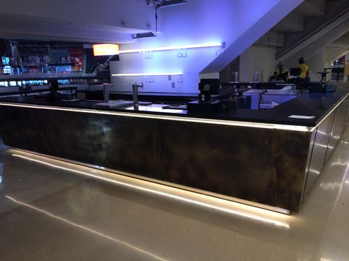 Stone, solid surface, epoxy, concrete, and plastic laminate counter tops.